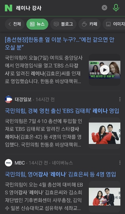 그러던 2024년 2월 7일, 갑작스럽게도 국민의힘에 인재영입으로 합류한다는 보도가 나왔습니다. EBS에서 2025 수능특강 영어듣기 강좌가 올라오는 중이었는데 말입니다. 반응이 어떨지 궁금하네요.