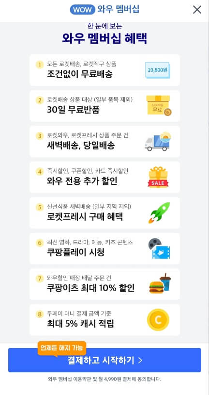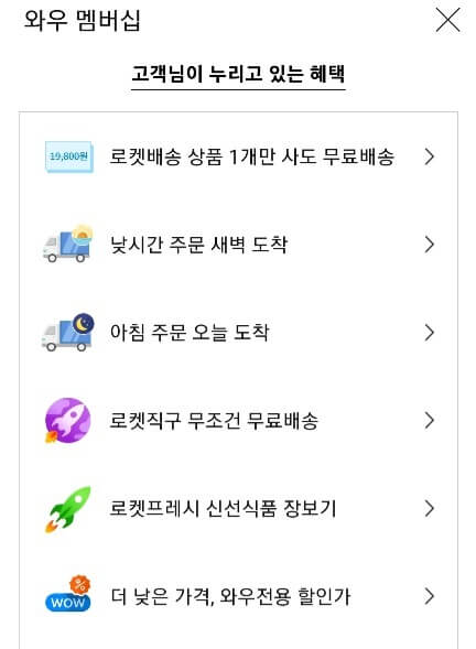 쿠팡 와우 멤버십 혜택