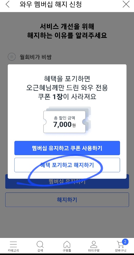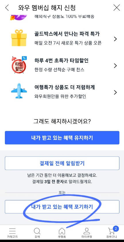 쿠팡 와우 멤버십 해지하는 방법