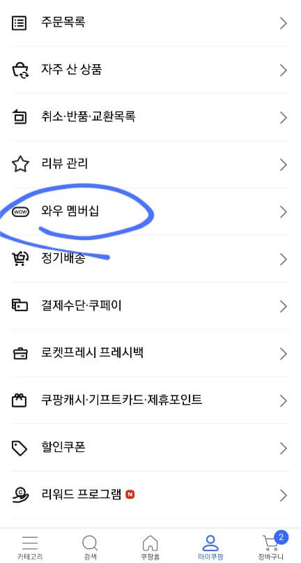 - 마이쿠팡 -> 와우 멤버십