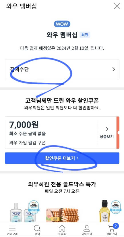 3. 마이쿠팡 -> 와우 멤버십을 선택하고