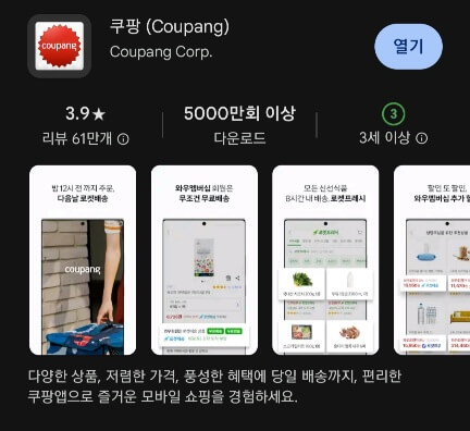 1. 쿠팡 애플리케이션을 다운로드합니다. (앱스토어 / 구글 플레이스토어)