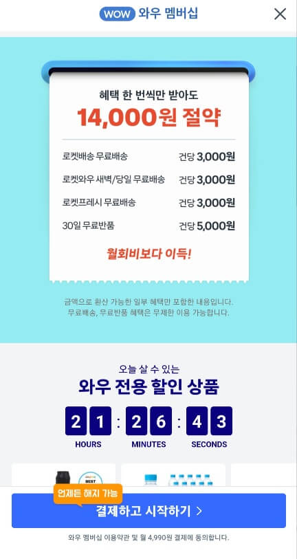 쿠팡 와우 멤버십 결제 관리