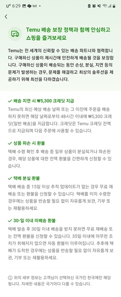 ✅ 예상 배송 기간 동안 배송이 안되고 배송 지연 시 5300원 크레딧 지급