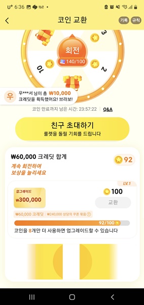 친구 초대로 티켓을 모으고 그 티켓으로 룰렛을 돌려 최대 크래딧을 얻을 수 있게 되는데요. 과정은 다음과 같습니다.